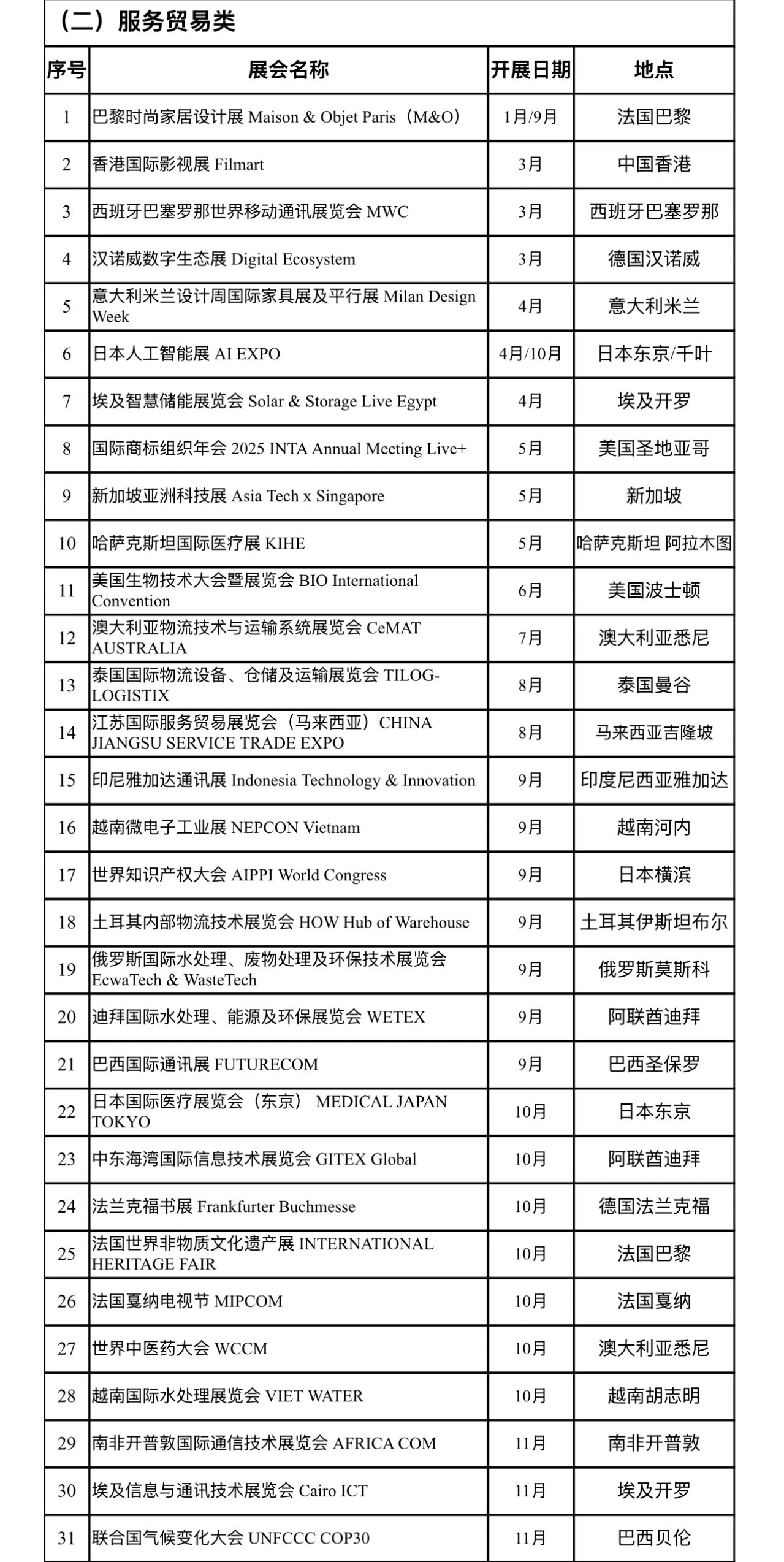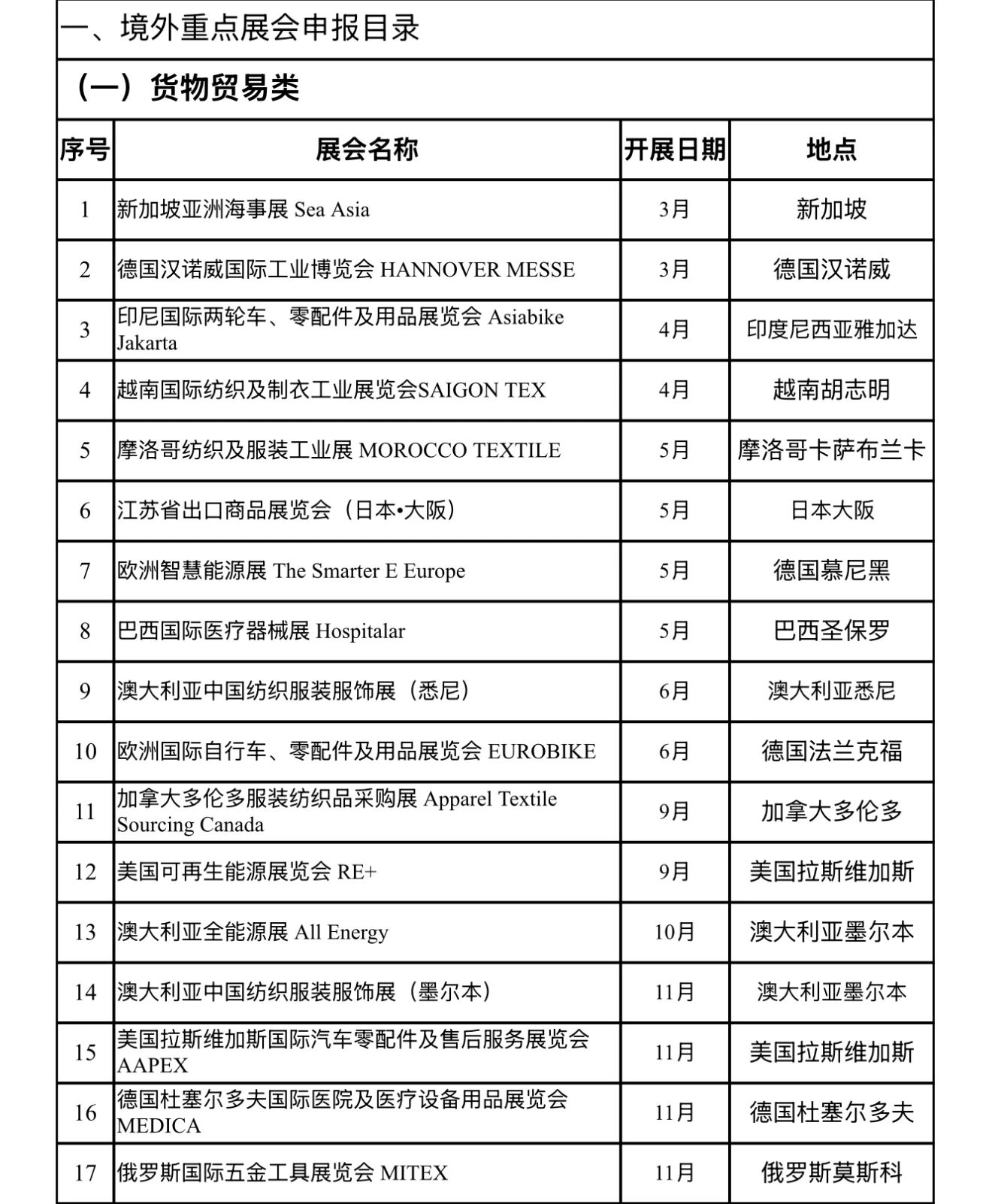 2025年贸易促进计划重点展会申报目录